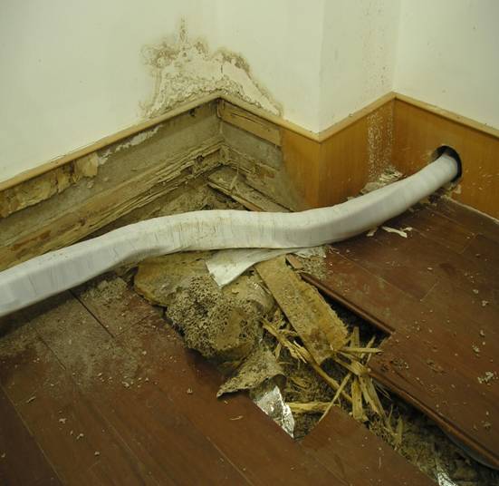 案例:2015年,漳州市某賓館7樓木地板發(fā)生白蟻危害。經(jīng)專業(yè)人員檢查發(fā)現(xiàn),這些白蟻來源于賓館外一棵行道樹中,通過地下管道和建筑物沉降縫隙的間隙蔓延進入賓館內部危害。